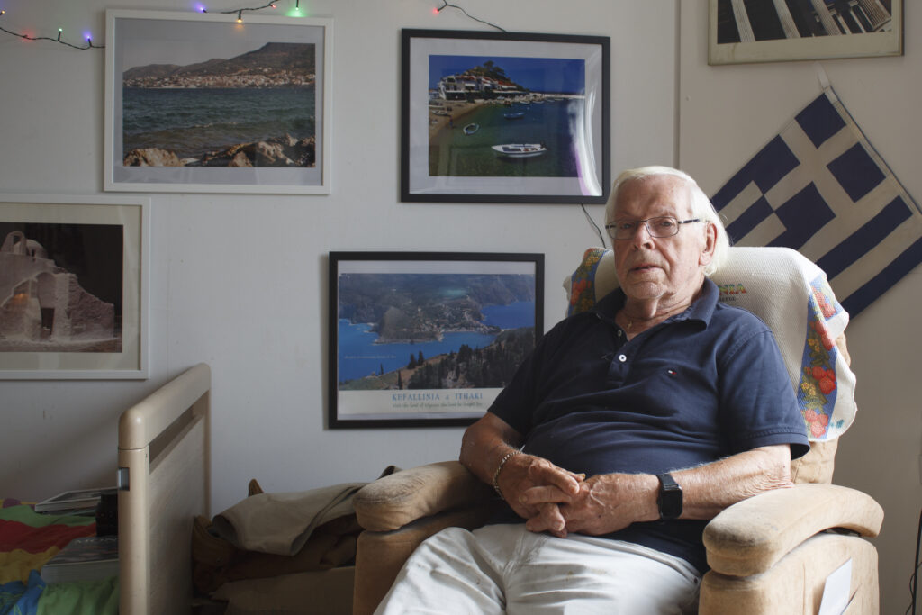 In 2019 bezocht John Griekenland voor het laatst. Dit was zijn 45e bezoek. Hij is toen op het eiland Samos geweest. Van hieruit kun je op een bepaald punt Turkije zien liggen. Daar heeft hij zelfgemaakte foto’s van op zijn kamer hangen.